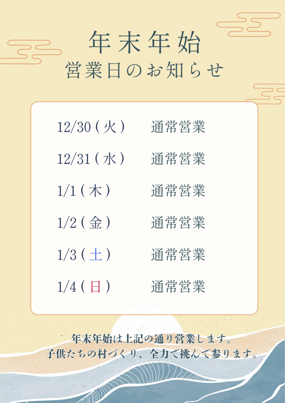 Home › スタッフブログ › お知らせ › 年末年始の営業日についてのお知らせ 2025-12-29 年末年始の営業日についてのお知らせ さまざまな事情で、十分な愛情を受けられない子どもたちが心から安心できる「居場所」となる家。 完成を待ってくれている子どもたちのために、この年末年始も、現場に立ち続けます。 ↑社長 関連記事 車のトランクに座って 【動画】新田の平屋ルームツアー 水廻り改装 開設23年 子どもたちのための「小さな村」 現場キッチン〜スペイン編〜 あけましておめでとうございます!2026年もよろしくお願いいたします。 コメントを残す コメントをキャンセルメールアドレスが公開されることはありません。 ※ が付いている欄は必須項目ですコメント ※ 名前 ※ メール ※ サイト 次回のコメントで使用するためブラウザーに自分の名前、メールアドレス、サイトを保存する。 Δ